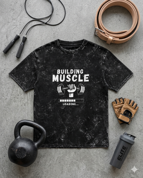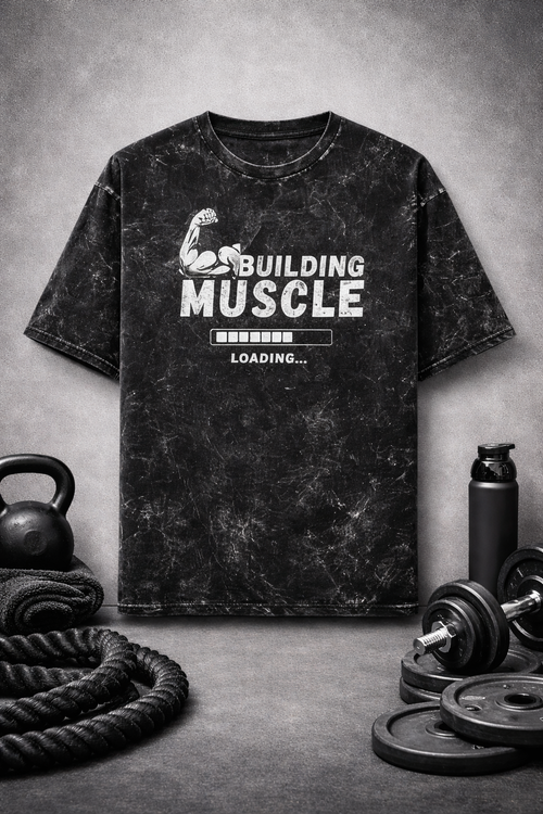 Building Muscle Loading… Gym T-Shirt | Acid Wash Fitness Tee | Workout Motivation Shirt